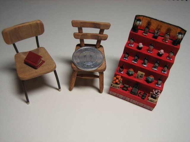 勝手に、メルシエールさんの椅子と、自作の米粒雛人形&豆本とコラボしました。