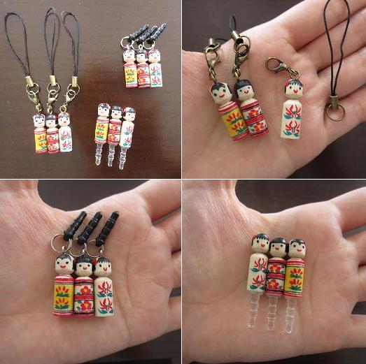 こけしで携帯周りのアクセサリーを・・・。