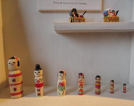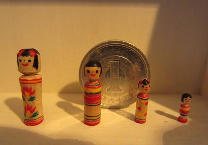 爪楊枝から切り落とさないこけしもあったり・・・・。