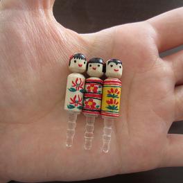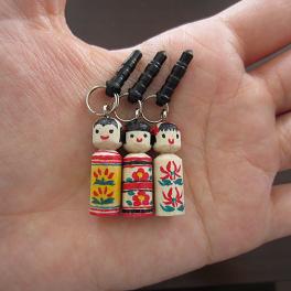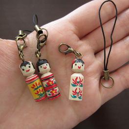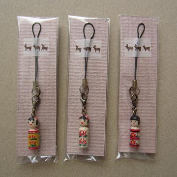 今回はその左側のやや小さい方のこけしを使って作りましたは、『携帯電話向けアクセサリー』。