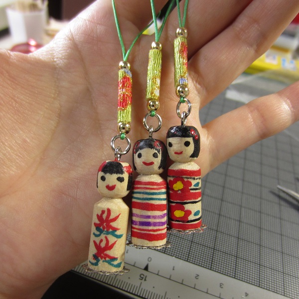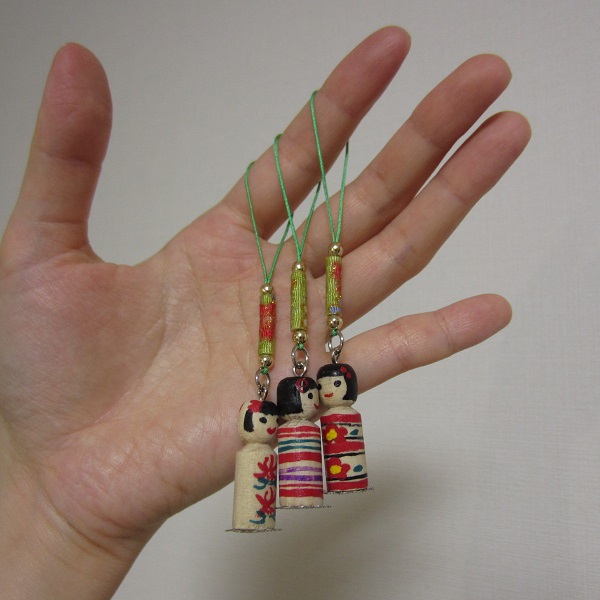 根付って事で、ストラップのこけしより大きいこけしを使用しています。