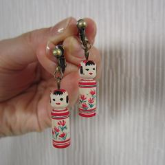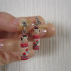 前回、こけしにイヤリングの金具を付けて『こけしイヤリング』を作りました。