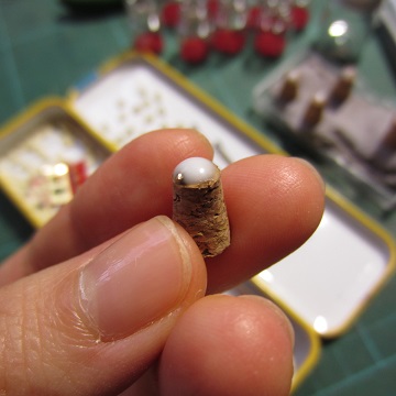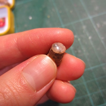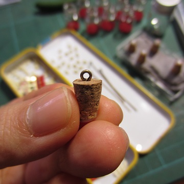 接着剤が完全に乾いたら、ストラップを付けたコルクの蓋をします。