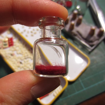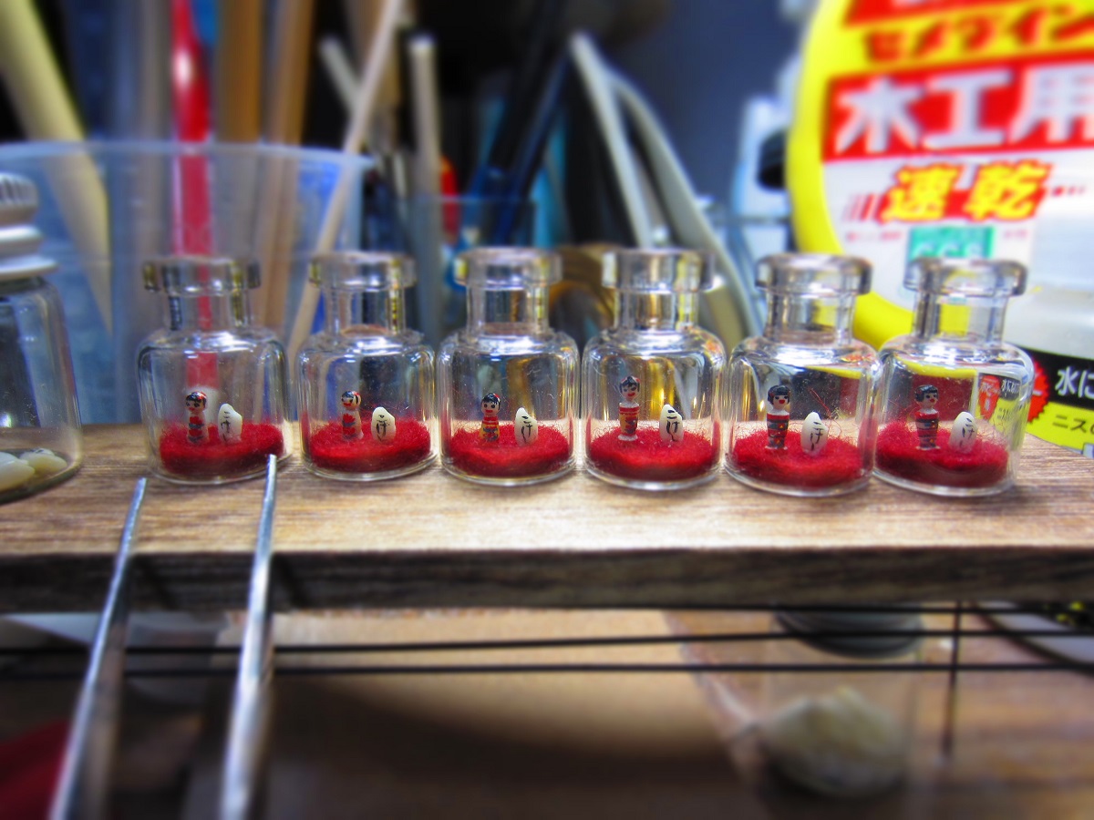 (つるつるしたビンの底に立たせるのは、接着剤を使っても、とっっても大変なんです!!)