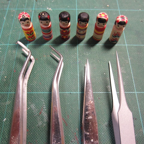 ちなみにピンセットは何種類か使い分けています。(※こけしは関係ありません)
