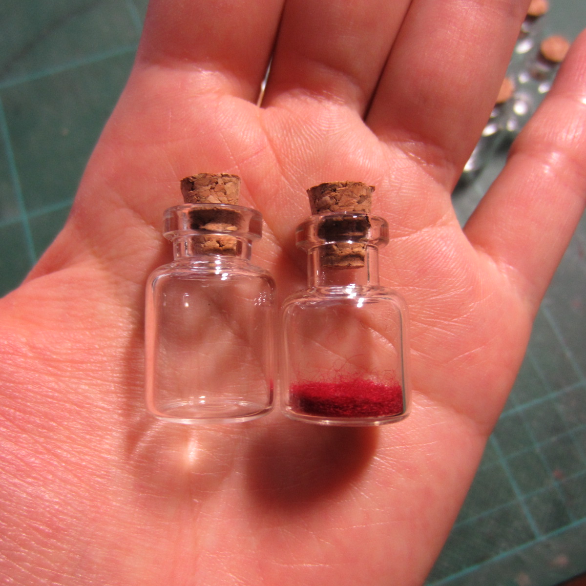写真右が、以前のビン。(※底に赤いフェルトを敷いています)