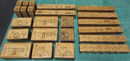 今回は、全てのはんこの側面に『TOHO消しゴム』の消しゴムはんこを捺してます。