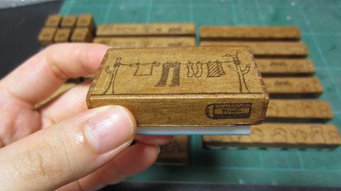 これからは新しい図案の消しゴムはんこを作りますよ。
