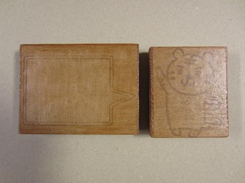 消しゴムはんこの大きさに合わせた木の持ち手を用意し、