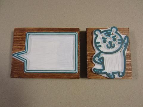 今度は、木の持ち手の大きさに合わせたクラフト紙に、はんこを捺します。