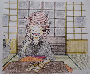 和服なので、一応『まとめ髪(ヘビ)』にしてみました。