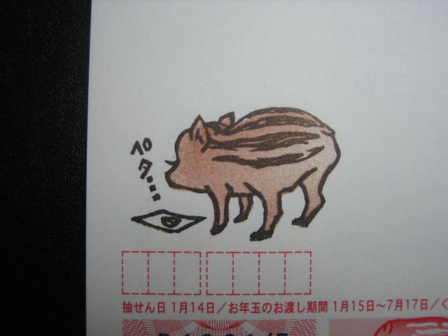 2007年は亥年だったので、うり坊(イノシシ)の消しゴムはんこを捺してます。
