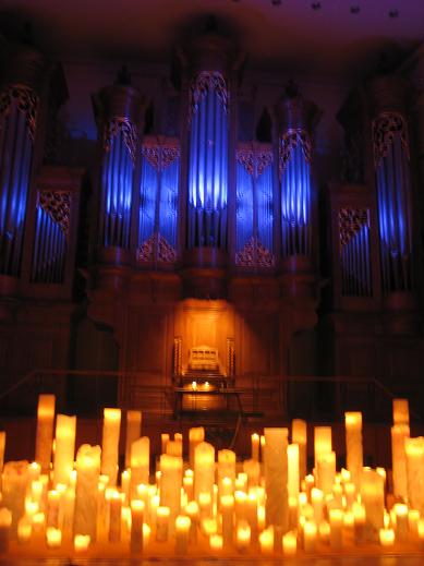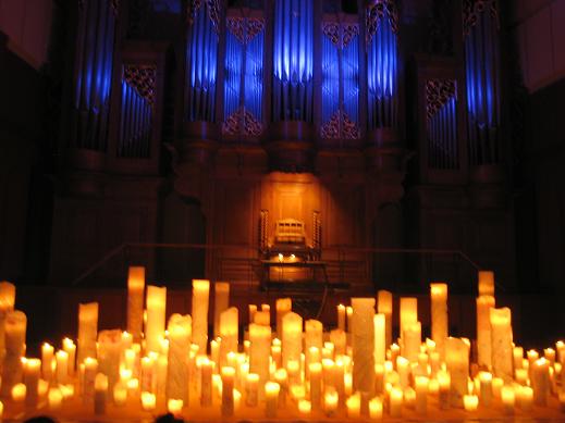 様々な大きさと数のキャンドル、パイプオルガン、歌…。