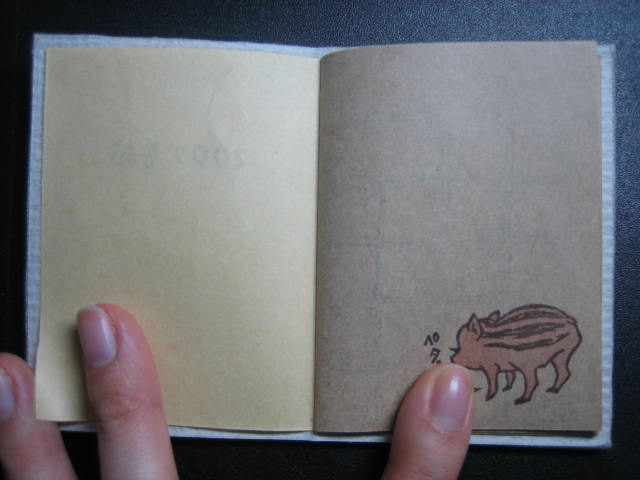2007年は亥年だったので、うり坊(イノシシ)の消しゴムはんこを捺してます。