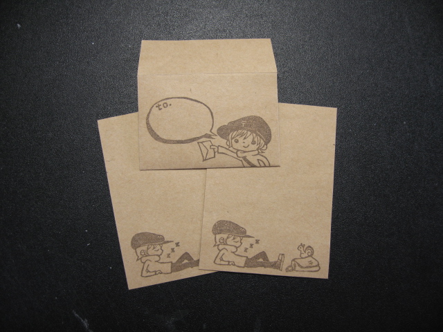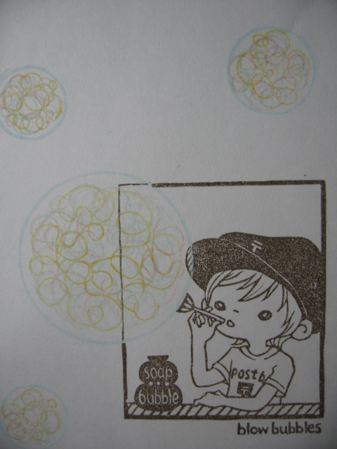 これから出てくる印刷のようなものは、すべて消しゴムはんこです。