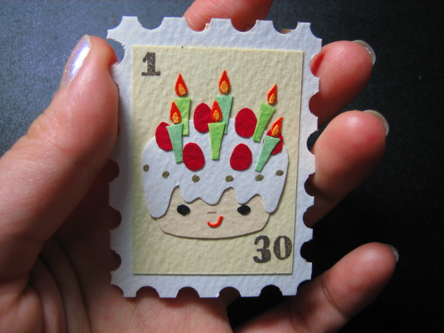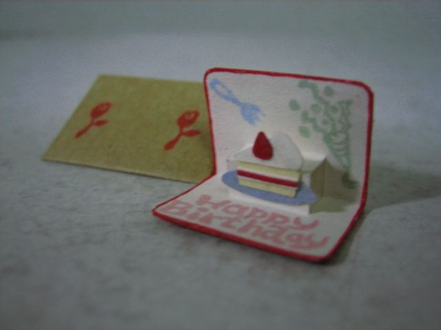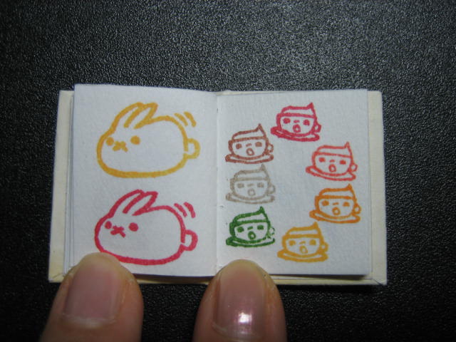 小さく切って・貼って・消しゴムはんこを捺して…という感じです。