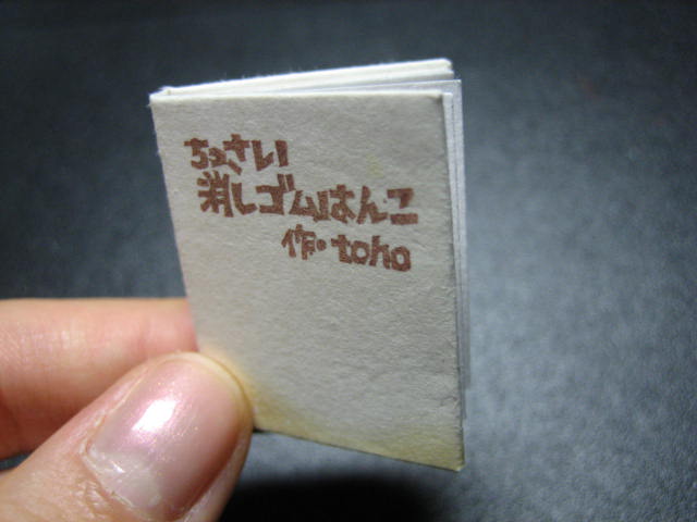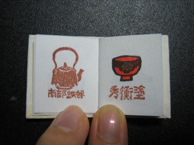 岩手県の封筒の隣にあるものは、ちいさい消しゴムはんこの本です。