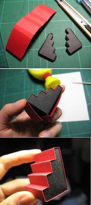 材料は、マーメイド紙(赤・黒)と木工用ボンドです。